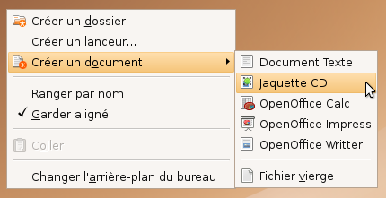 Peut-être avez vous déjà remarqué qu'un clic droit sur le bureau ouvre un menu "Créer un document" mais que celui-ci est vide.
