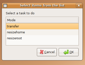 2. Sélectionnez transfer pour transférer votre installation d'Ubuntu vers une partition dédiée ;