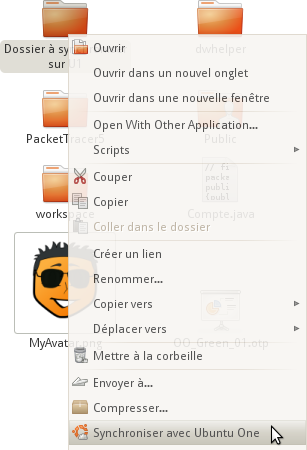 - Vous pouvez synchroniser n'importe quel dossier présent dans votre dossier personnel avec Ubuntu One : clic droit sur le dossier → synchroniser avec Ubuntu One.