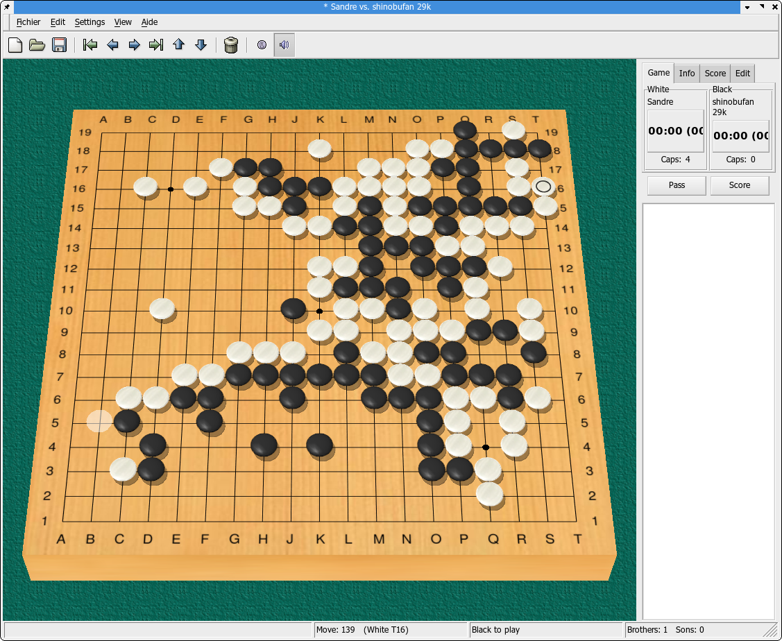 - gnugo et mogo sont les moteurs de l'adversaire informatique. La principale différence est que mogo compte à la chinoise (pierres sur goban+territoires) alors que gnugo joue à la japonaise. Vous pouvez tester les compétences de gnugoici