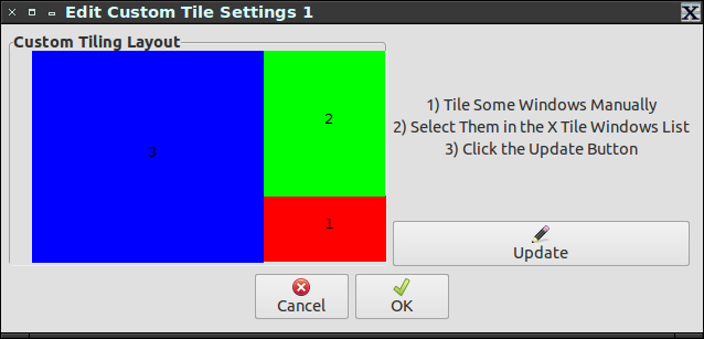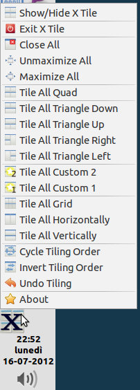 x tile est un petit programme permettant de disposer automatiquement les fenêtres sélectionnées selon un modèle de disposition. Il fonctionne quel que soit le gestionnaire de fenêtres.